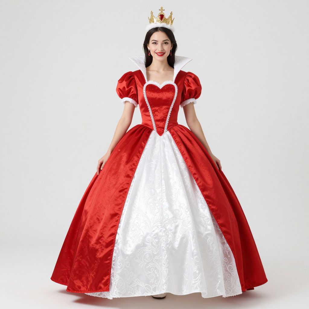 Enchanting Royal Heart Queen Costume, dressed in a red and white gown and a crown