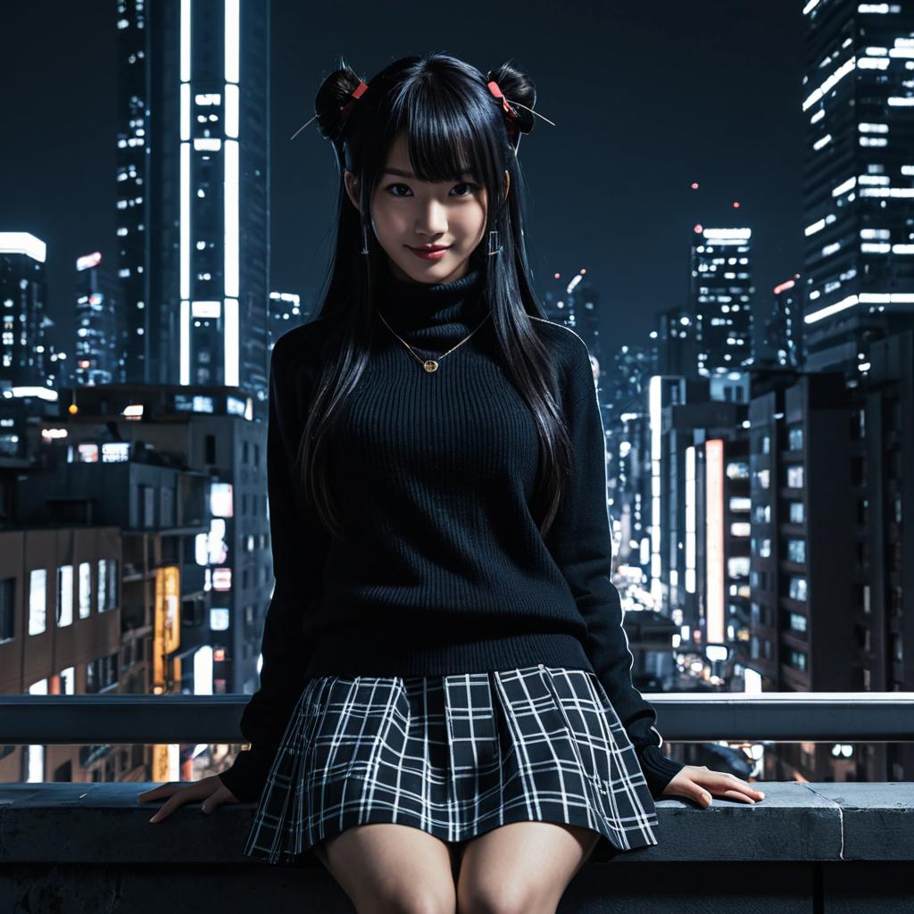 Elegant Schoolgirl at Sunset View