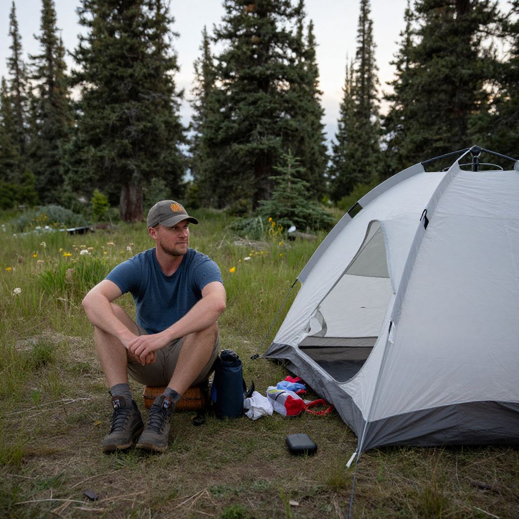 Photograph of five young women sitting around a small stream in a mountainous forest, eating sandwiches. They wear athletic clothing, including tank tops, shorts, and a cap. One woman has blonde hair in a ponytail, sunglasses, and a teal long-sleeve shirt; another has a black cap. They sit on rocks, with plates of food and disposable cups in front of them. The background features tall pine trees, rocky terrain, and a clear stream. The scene is brightly lit with natural daylight, highlighting the lush greenery and serene outdoor setting.