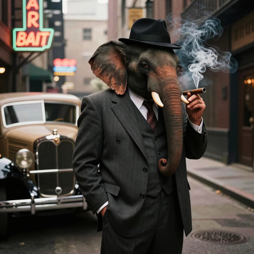 Gangster Elephant Poker Noir Scene