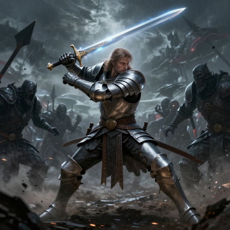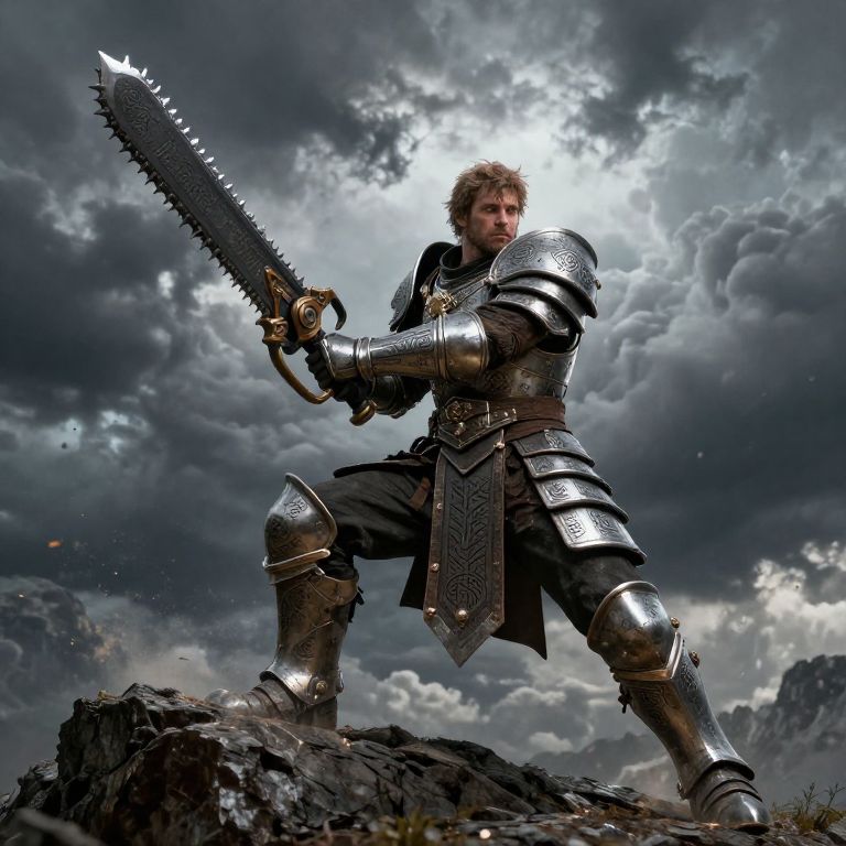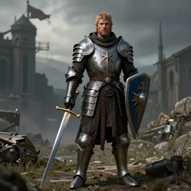 Wildlife Photography Warrior, medieval, Fantasy, Dungeons and dragons, character Portrait, full entire Body, heavy Armor and weapons, sword and shield,