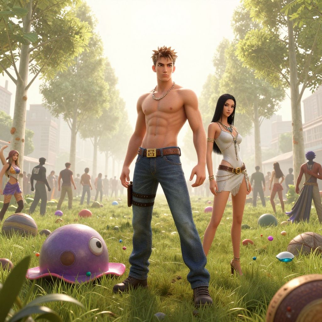 Barefoot highly detailed angel girl and man, detail faces, in gta v, stephen bliss, unreal engine, fantasy art by greg rutkowski, loish, rhads, ferdinand knab, makoto shinkai and lois van baarle, ilya kuvshinov, rossdraws, tom bagshaw, global illumination, radiant light, detailed and intricate environment
