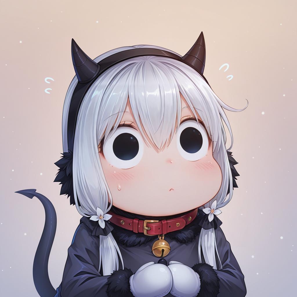 Muppo, kantai collection, 1girl, horns, tail, hair between eyes, solid circle pupils, long hair, sidelocks, collar, mittens, by artist rebe11, dark_illustrious