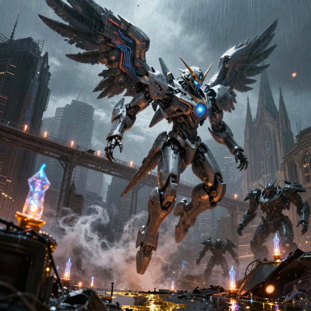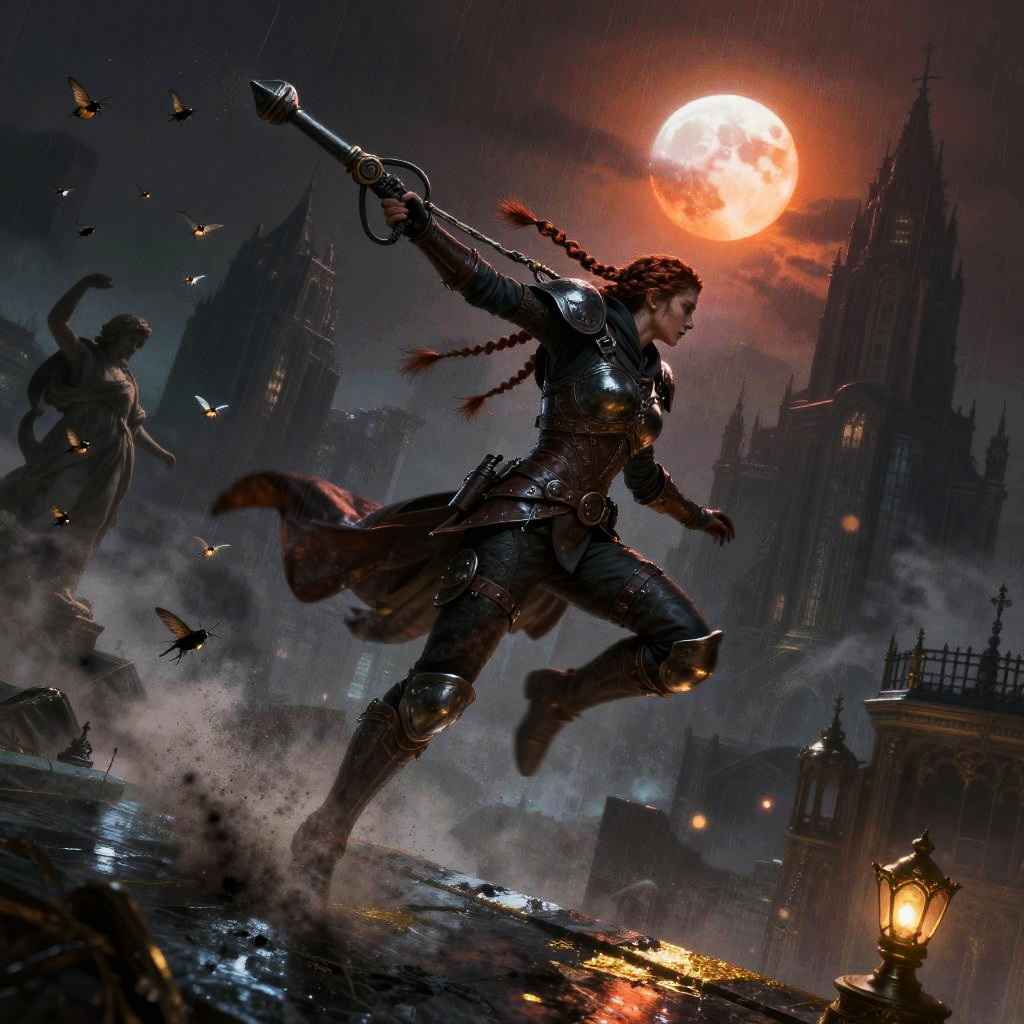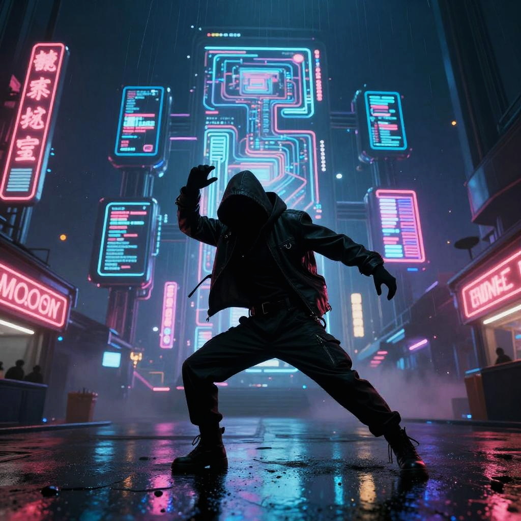 Intricate dynamic action shot of aurora-glazed cryo-dancer (nonbinary) in reflective thermo-silk robes with a translucent fiberwing cape studded with frost-lights, wielding crystalline wind-knives, mid-vault scattering prism shards, in icebound polar arcology skyline at twilight with auroral storms, ice-mirror puddles, wind-swept spires, breath vapor, drifting snow-embers and pale-blue volumetric haze from distant cryo-facilities, cinematic dark fantasy mood, oppressive atmosphere, digital painting, concept art, smooth yet gritty, razor-sharp focus, rule of thirds, hyper-realistic lifelike textures, dramatic rim lighting, volumetric haze and embers, medium shot, f1.6 lens, dynamic motion blur, lens bloom, trending on ArtStation, Cinestill 800, intricate details, towering scale, ominous tension, art by Moebius and Shaun Tan