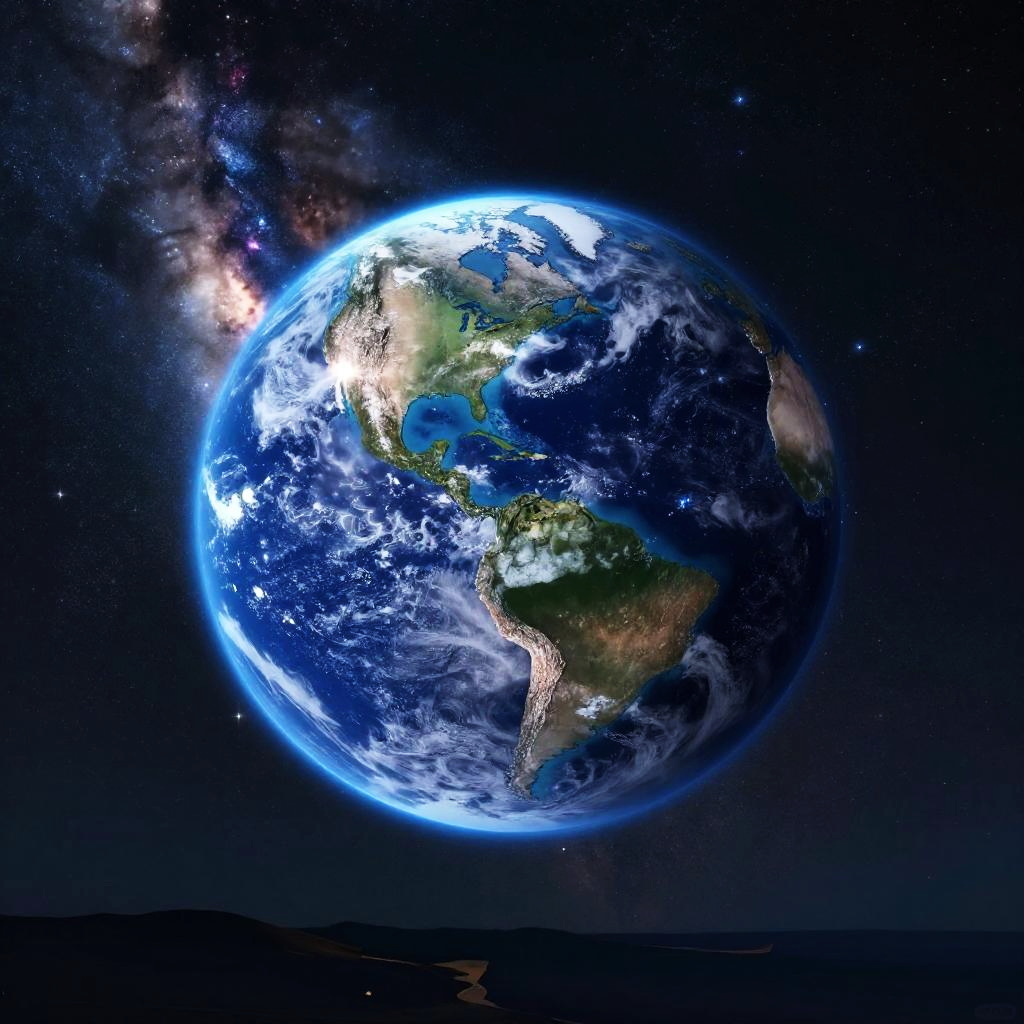 Glowing Earth CGI with Milky Way