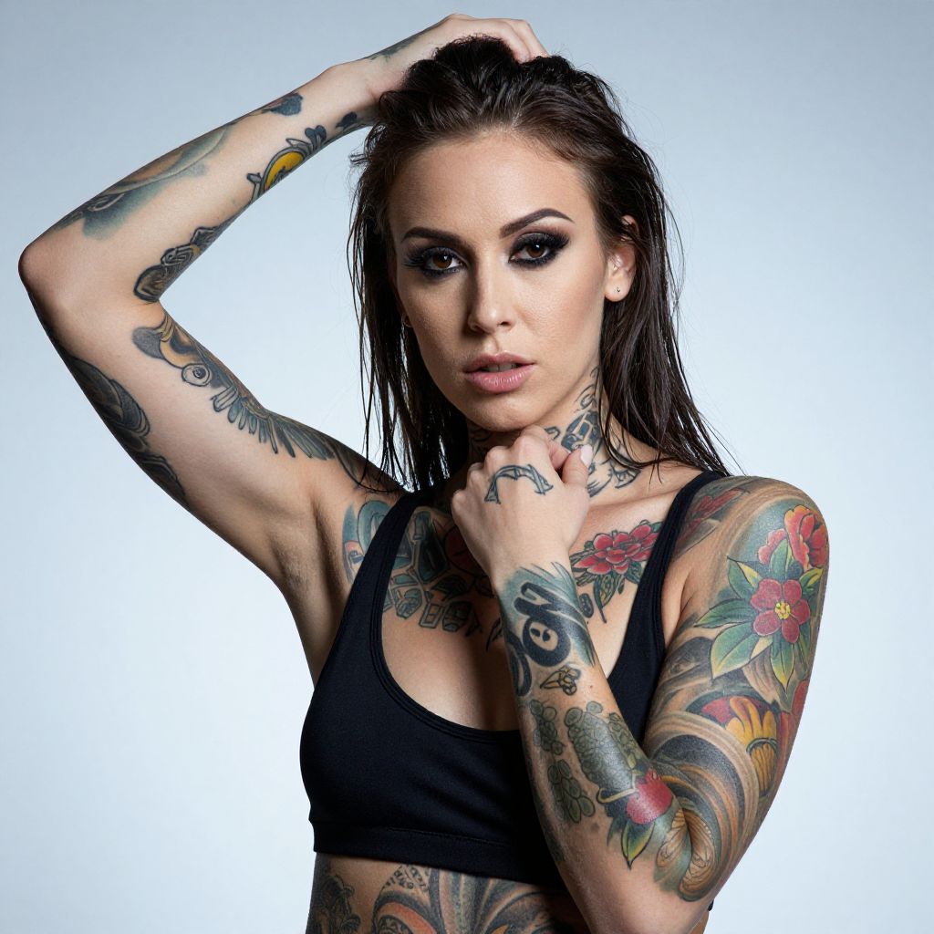Tattooed Woman Side Profile Portrait