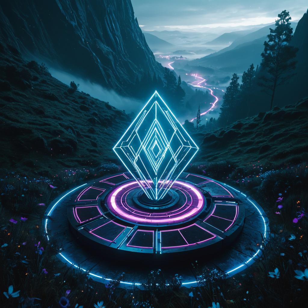Overhead view of ancient floating market in the misty canyons of Eloria, medium shot, cyberpunk noir with neon colors, sharp, rendered in Unreal Engine 5, bloom, dramatic lighting, anime key art by Greg Rutkowski.