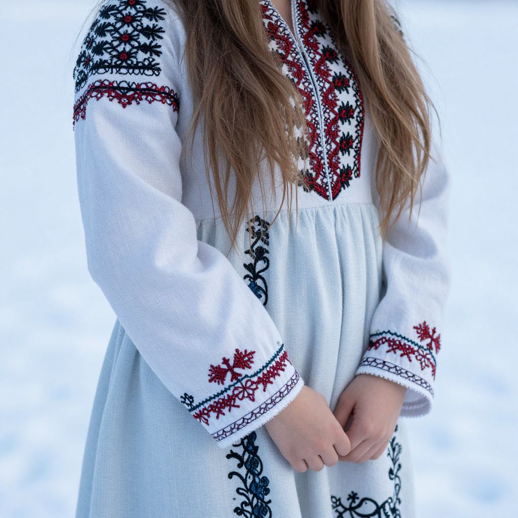 Frozen hidden folk costume, a close up of a person with long hair wearing a dress
