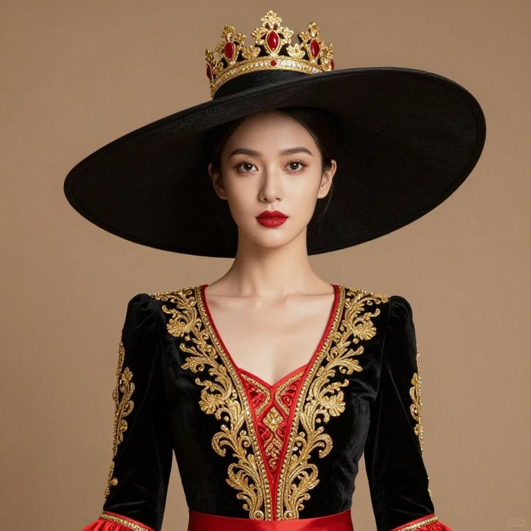 Elegant Female in Red and Gold Outfit