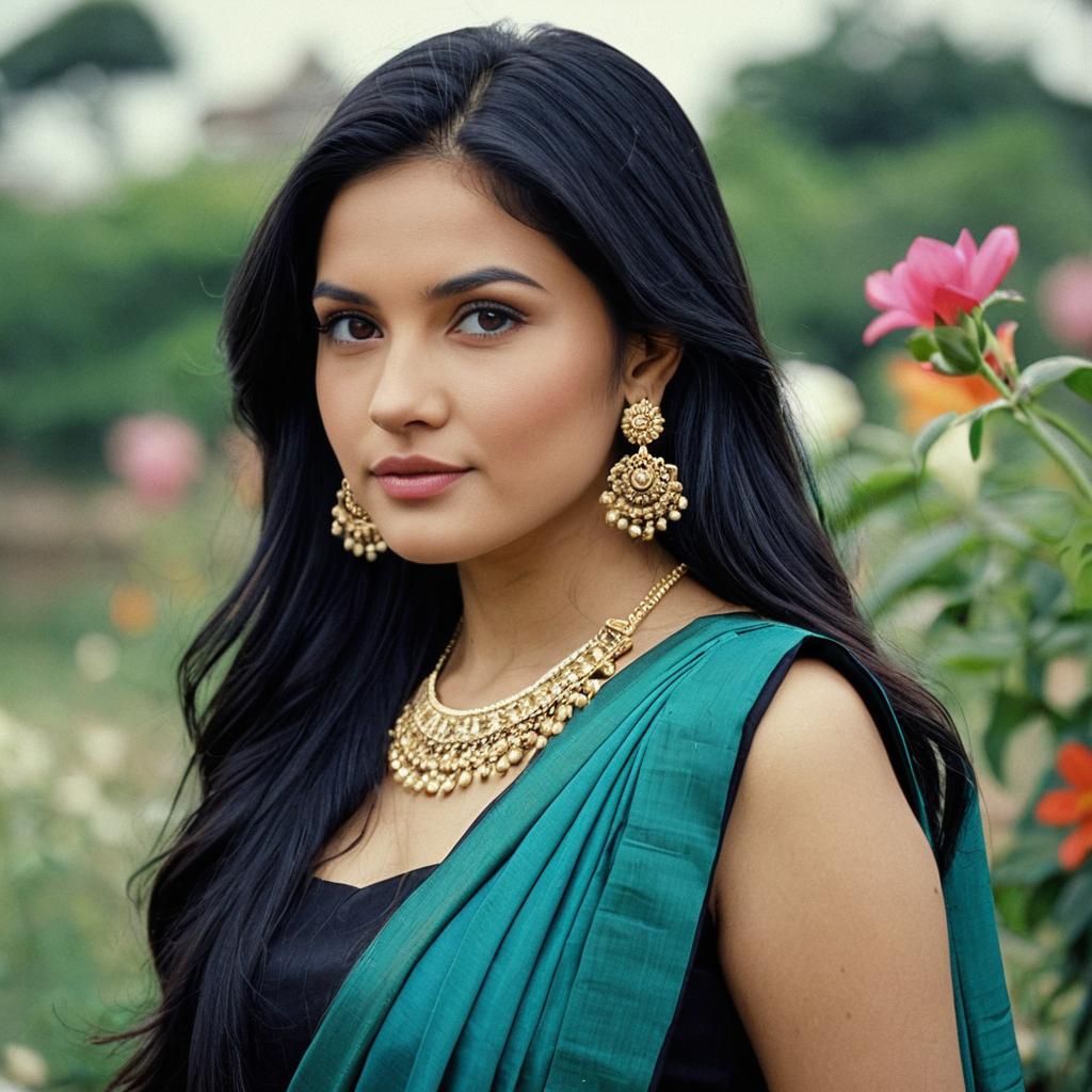 Woman in Golden Embroidered Choli Outdoors