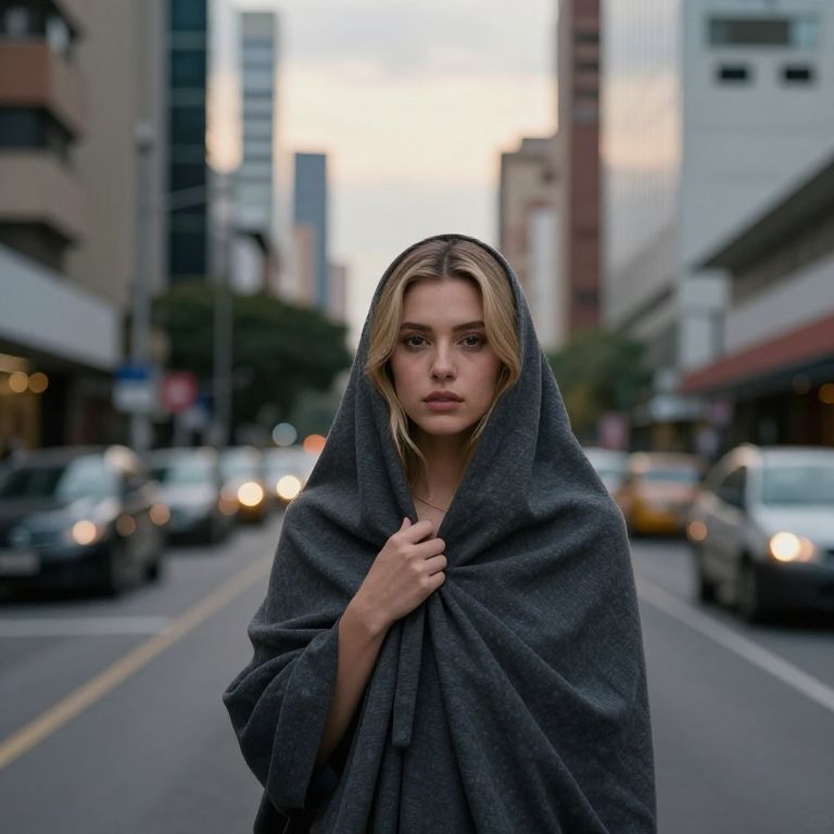 Draping Photography Small mid 20s latina, blonde, looking at the camera, depth of field in the city Bogotá at 5 Pm,