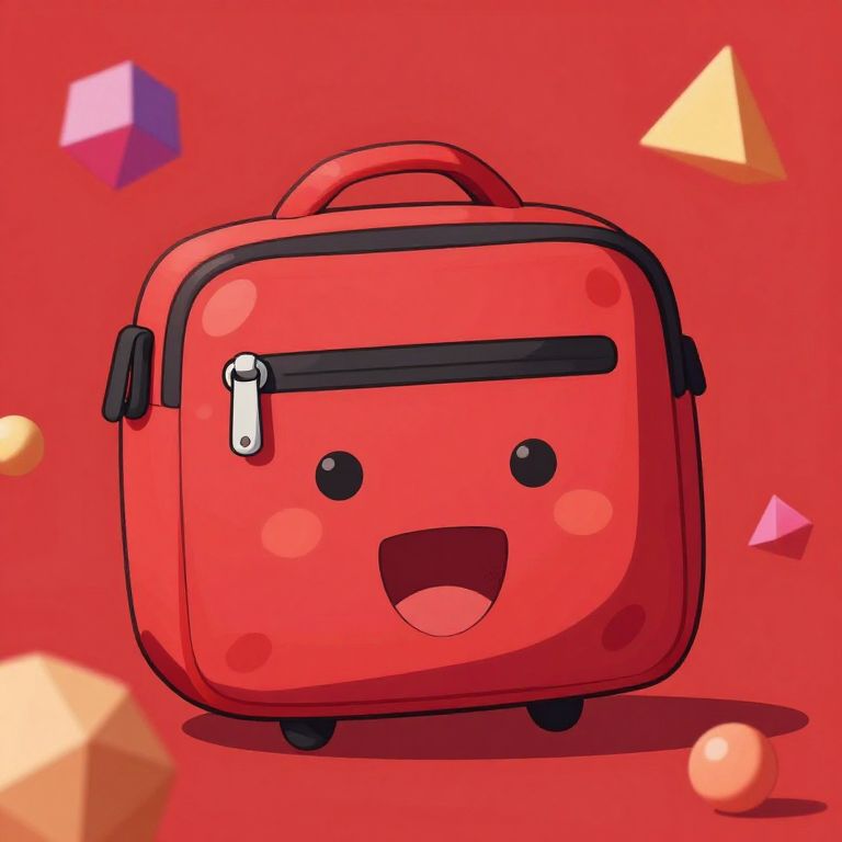 "B-Roll anime style mixed background with pouch movement excited fun and geometry object in red colour theme,"