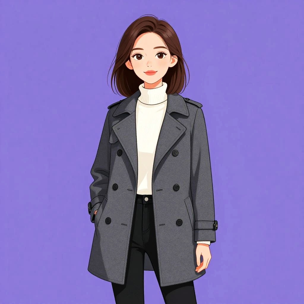 Woman with pretty face and pretty hair. Woman, business casual, tweed open-front blazer with a ruched three-quarter length sleeve, draped lines, white scoop-neck undershirt, black slim-fit trousers, minimalist golden pendant necklace, thin black belt with a simple buckle. --sref 1467