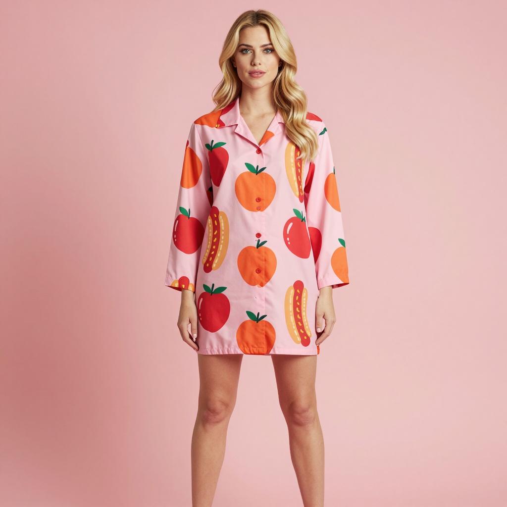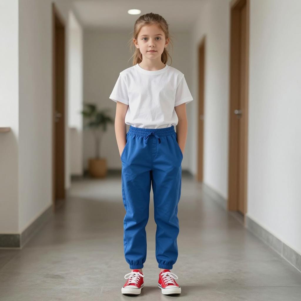 Orange juice carton costume, photograph of Asian girl, long brown hair, wearing orange and white Quikce apron with orange slice design, orange sleeves, blue jeans, white sneakers, orange hairband with green leaves, standing against plain beige wall, full body, neutral expression, casual style, daylight, realistic photography, modern fashion, cute, minimal background, centered composition