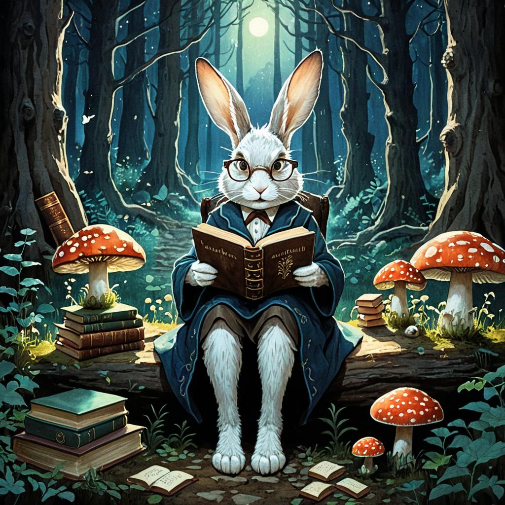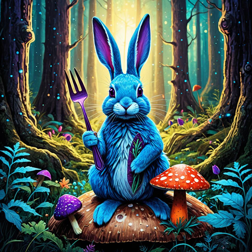 Whimsical Blue Rabbit in Magical Forest