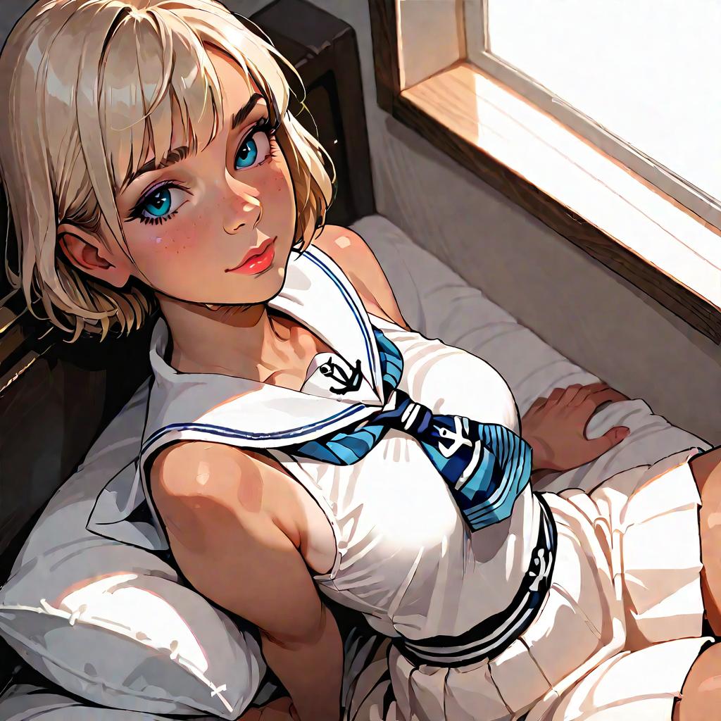 Anime Style Girl in Sailor Dress on Bed