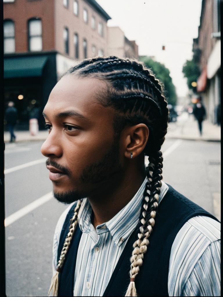 Man with Cornrow Braids, candid street portrait, natural daylight