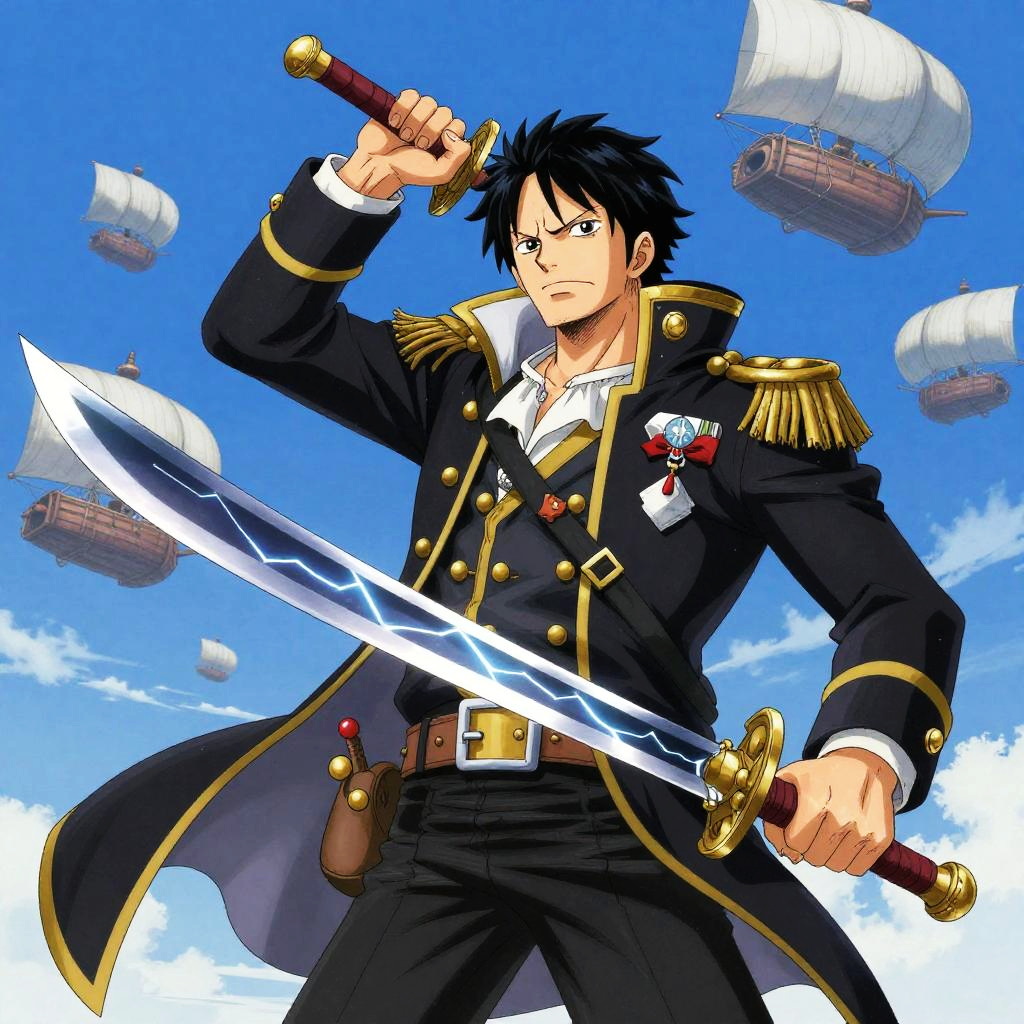 Heroic Sky Pirate Captain Anime Style
