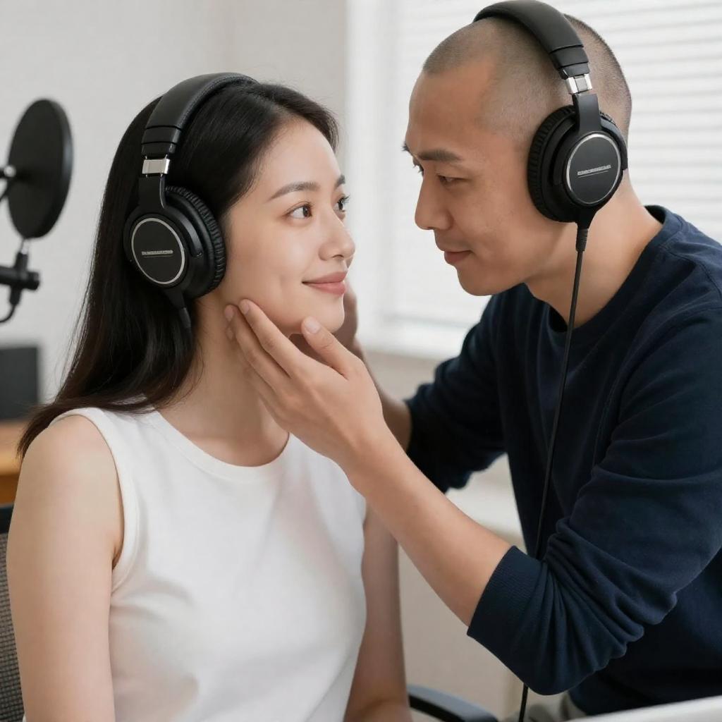 Tender Moment Between Headphone Wearers