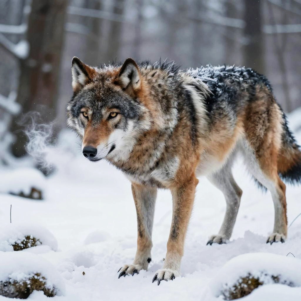 Half Wolf-Human Hunting in Snow