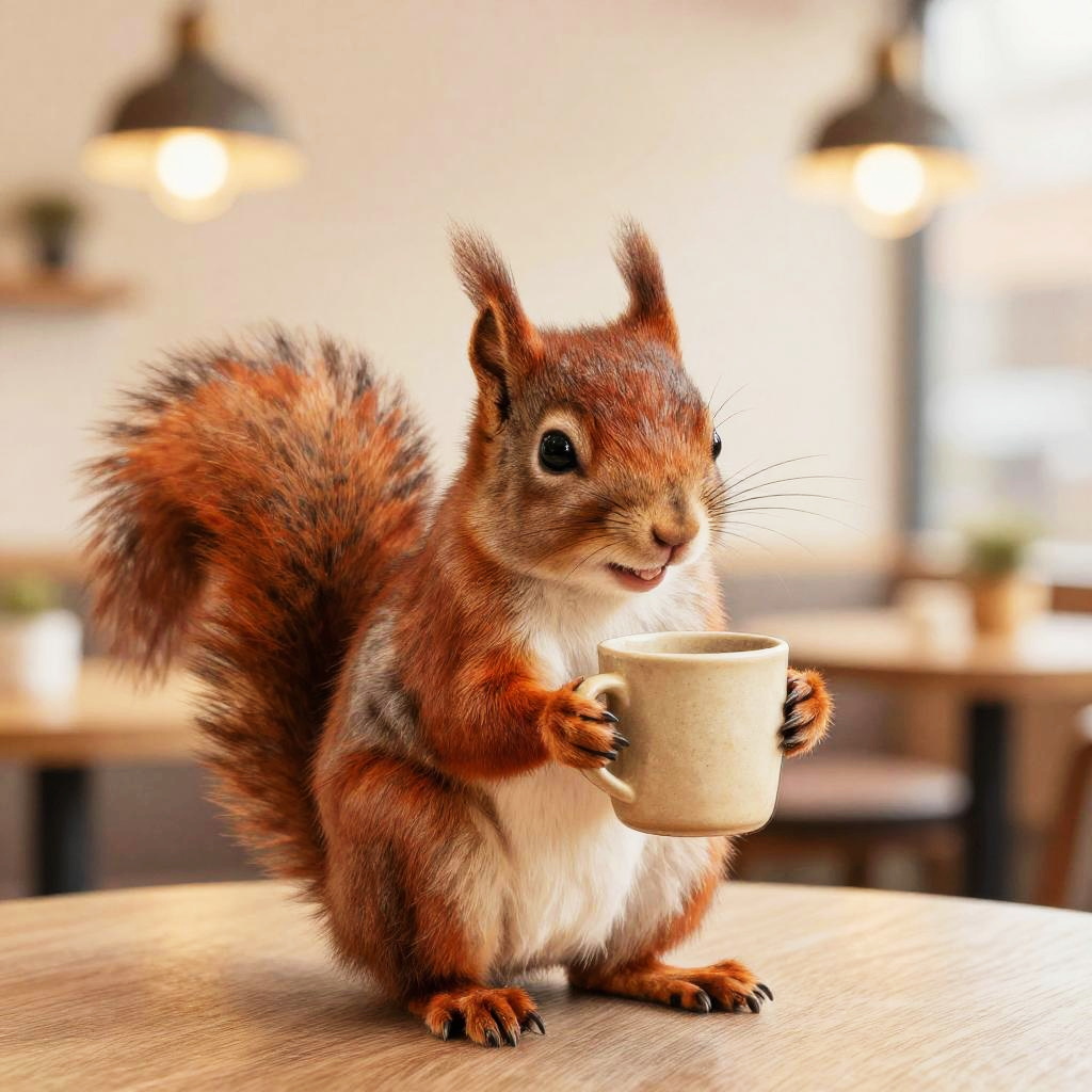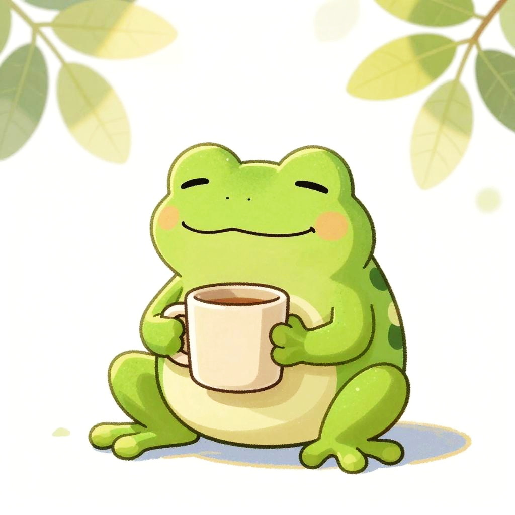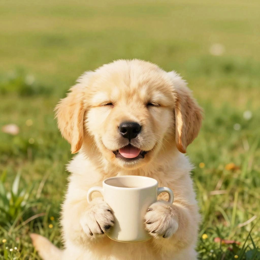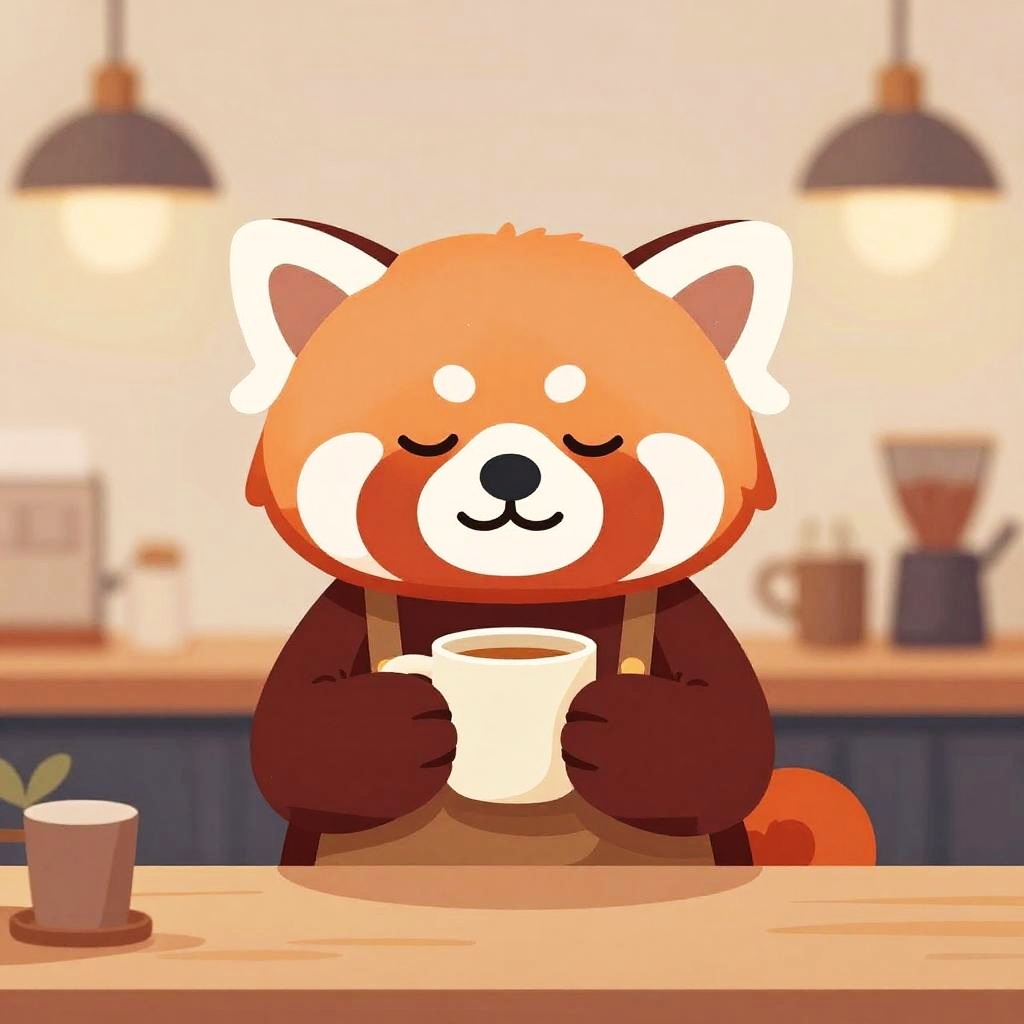 Vibrant acrylic painting of a chubby white rabbit with shiny pink nose, eyes closed and smiling, holding a beige mug with both paws. plain white backdrop framed with clean negative space so the character is the focal point. Soft textures, friendly whimsical vibe, centered composition, gentle rim light, subtle shadows, high detail, minimal clutter, inviting color palette.