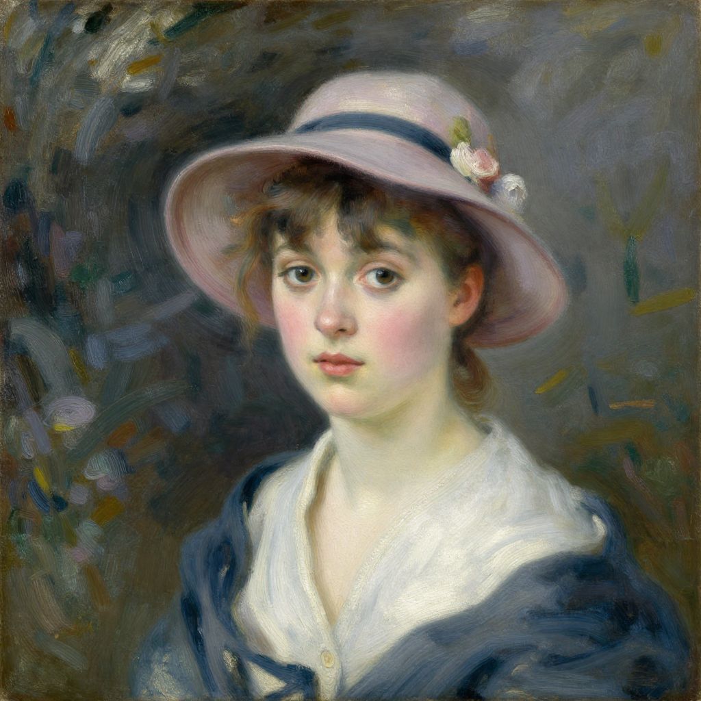 Young Woman Wearing a Hat, Oil by Pierre-Auguste Renoir (1841-1919, France)