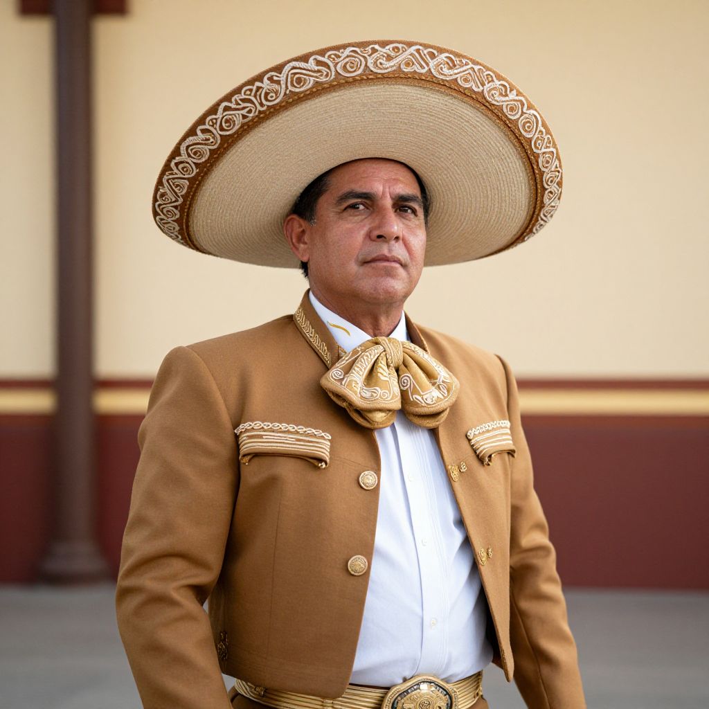 Mexican National Costume Male, dressed in traditional mexican clothing and a large hat