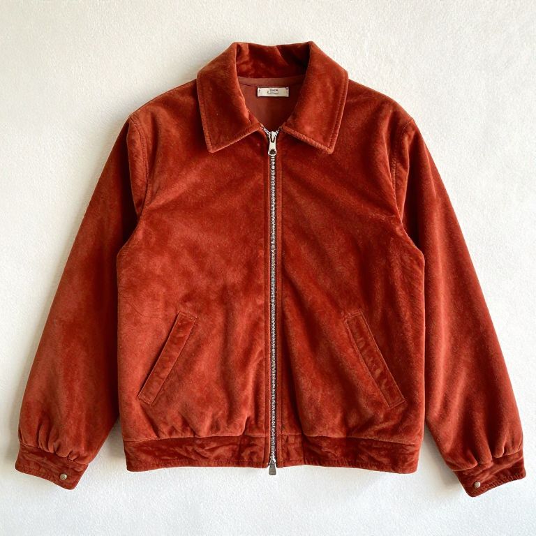 Vintage 1970s Rust Velour Zip Up Jacket - 70s Rust