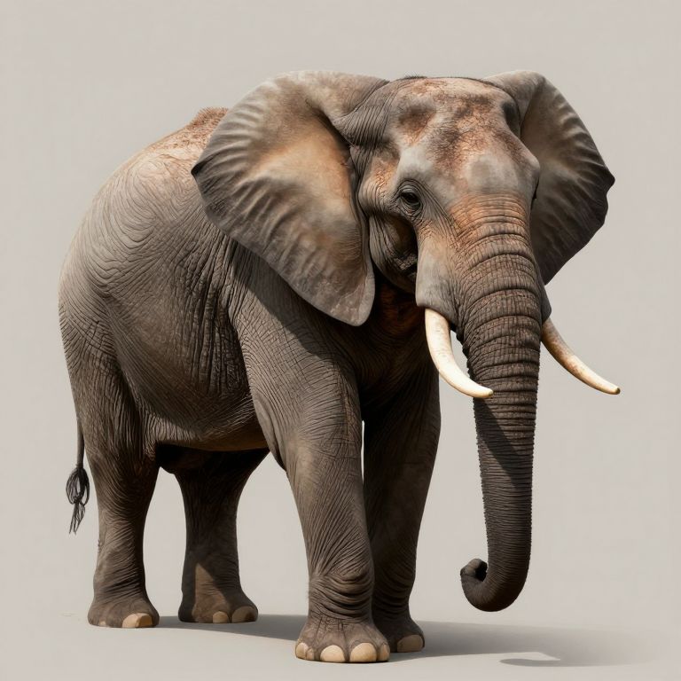 A highly detailed digital illustration of an elephant, rendered in a realistic style with intricate textures and shading, showcasing its majestic presence against a neutral background.