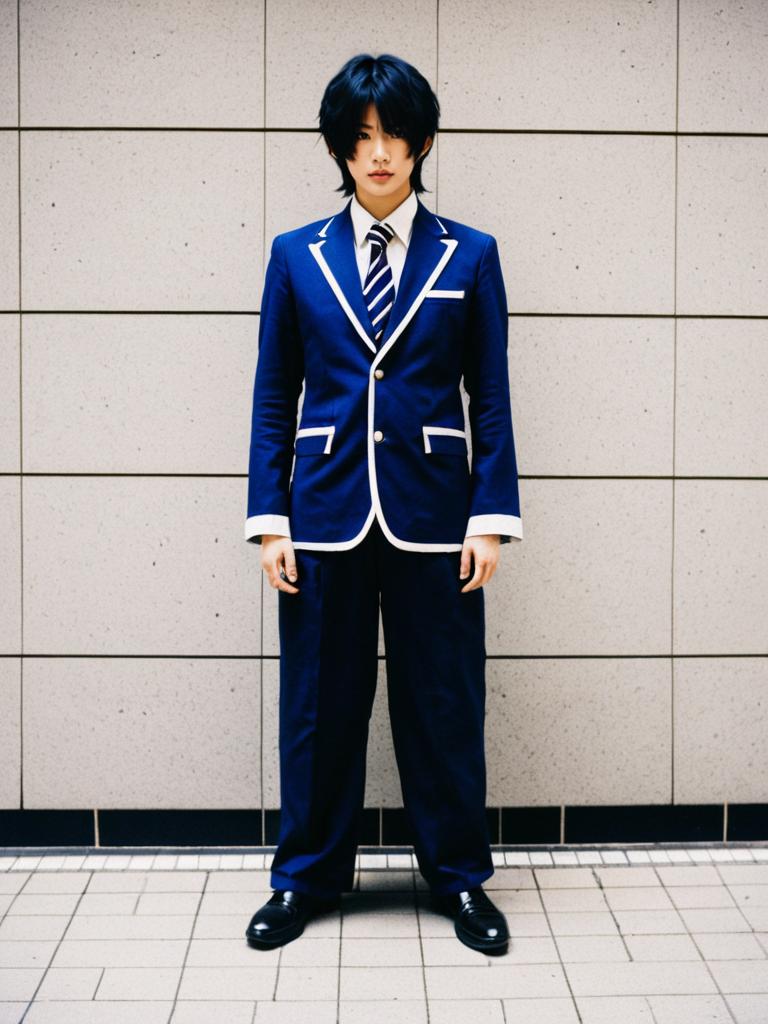Photo-realistic cosplay photo of person in hachiouji naoto costume. Full body. Standing. Full length.