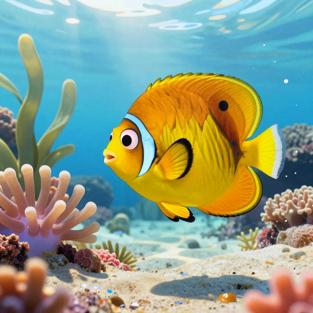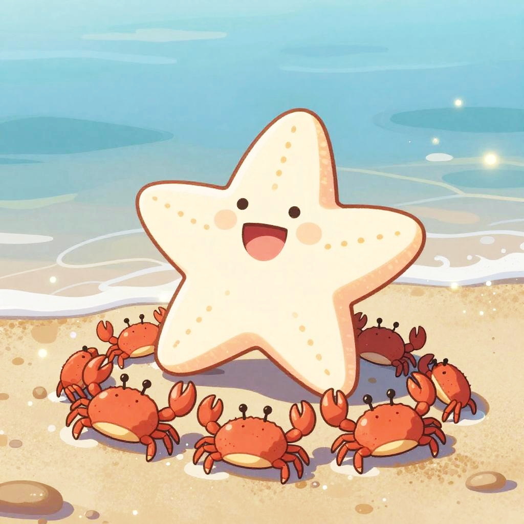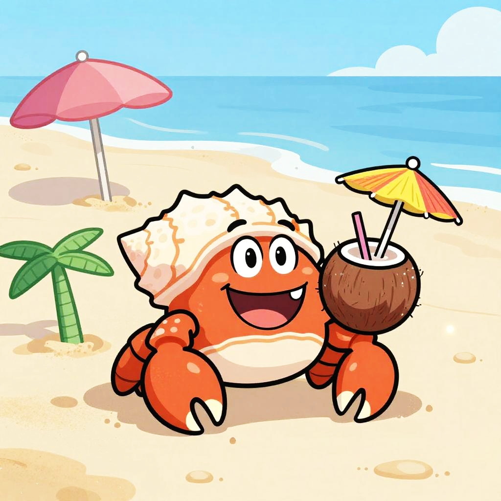 A chirpy cartoon tropical frog at lush rainforest floor strewn with colorful leaves, leaping between moss-covered stones in mid-jump. Bright, cheerful colors; playful vibe; bold outlines; soft glow; crisp edges; subtle highlights on wet sand; gentle sea breeze; balanced composition; high detail; clean, inviting summer mood.