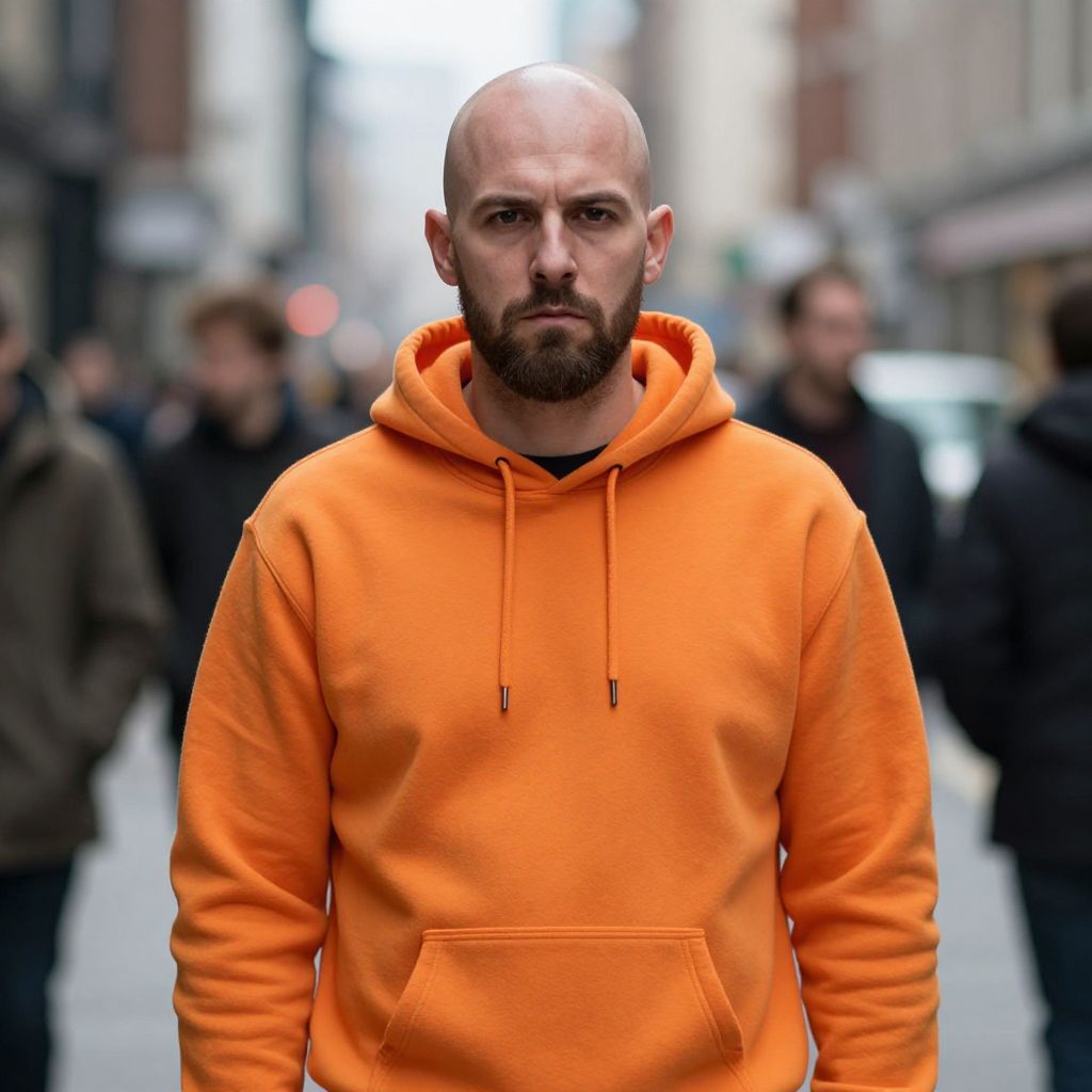 Serious Man in Red Hoodie Forest