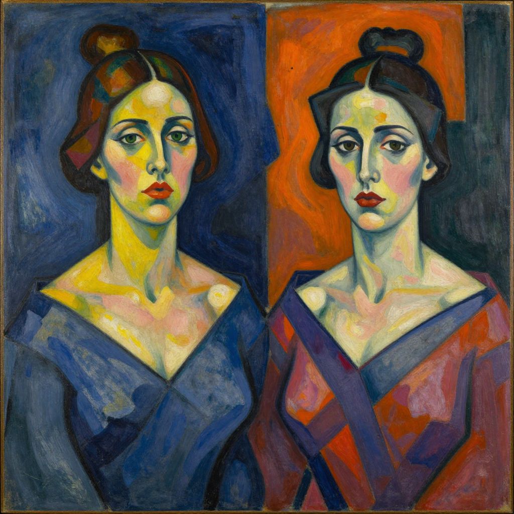 Expressive distorted bust portrait of a woman with long neck, big ears and a small head, standing on a lake, oil painting, impasto, muted colors, artwork by arnold bocklin