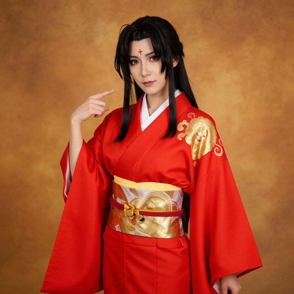 Realistic Sango Cosplay in Red Kimono
