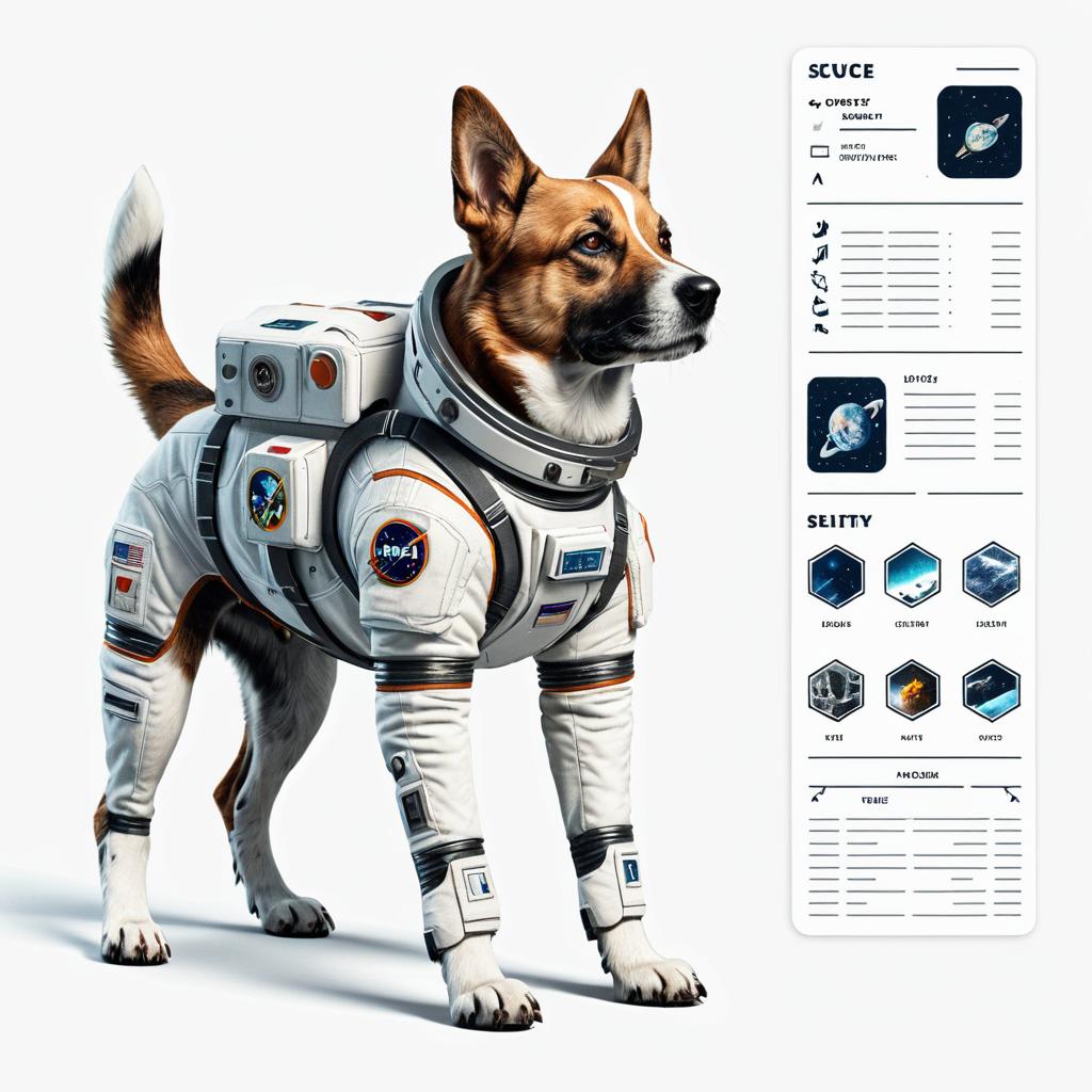 Resin sticker design of an astronaut dog, full-length character sheet in game asset style, isometric, ultra-detailed 3D render, white background