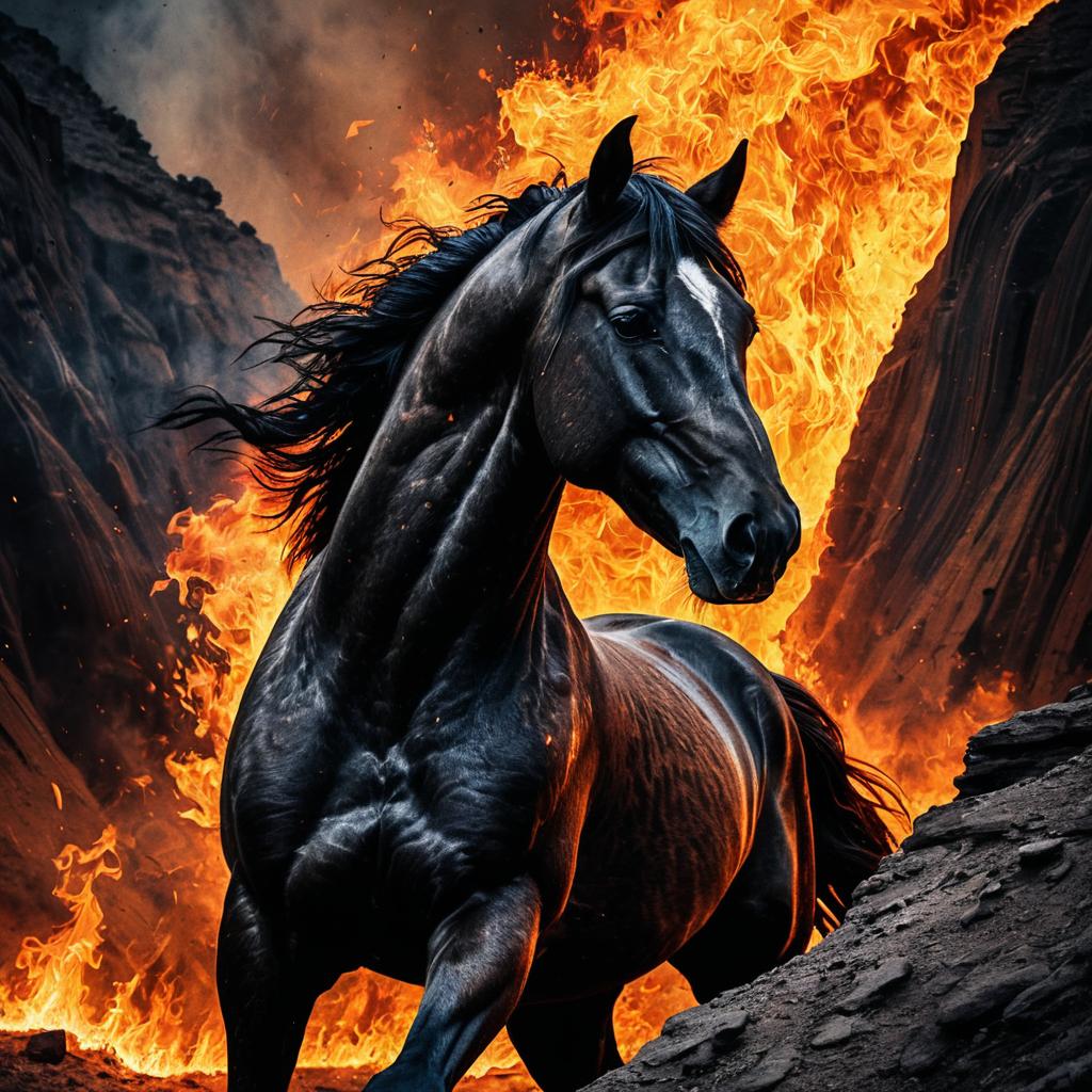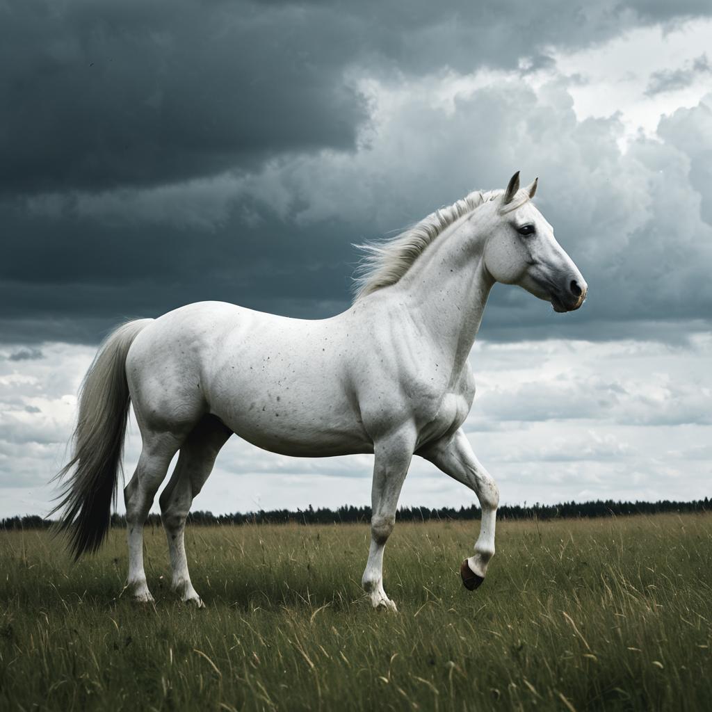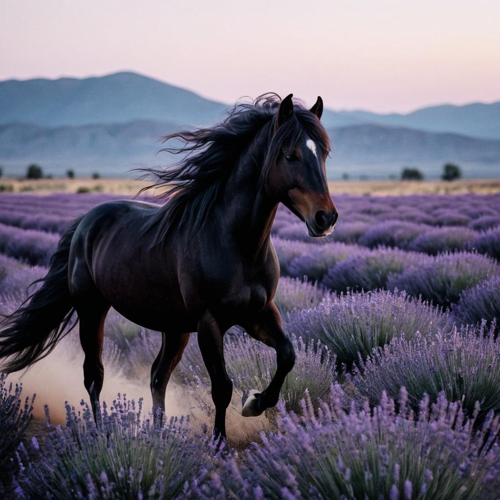 Digital illustration of a baby horse galloping through a misty enchanted forest. The scene features muted earth tones, soft glowing lighting, and floating glowing dust particles, creating a magical and ethereal atmosphere.