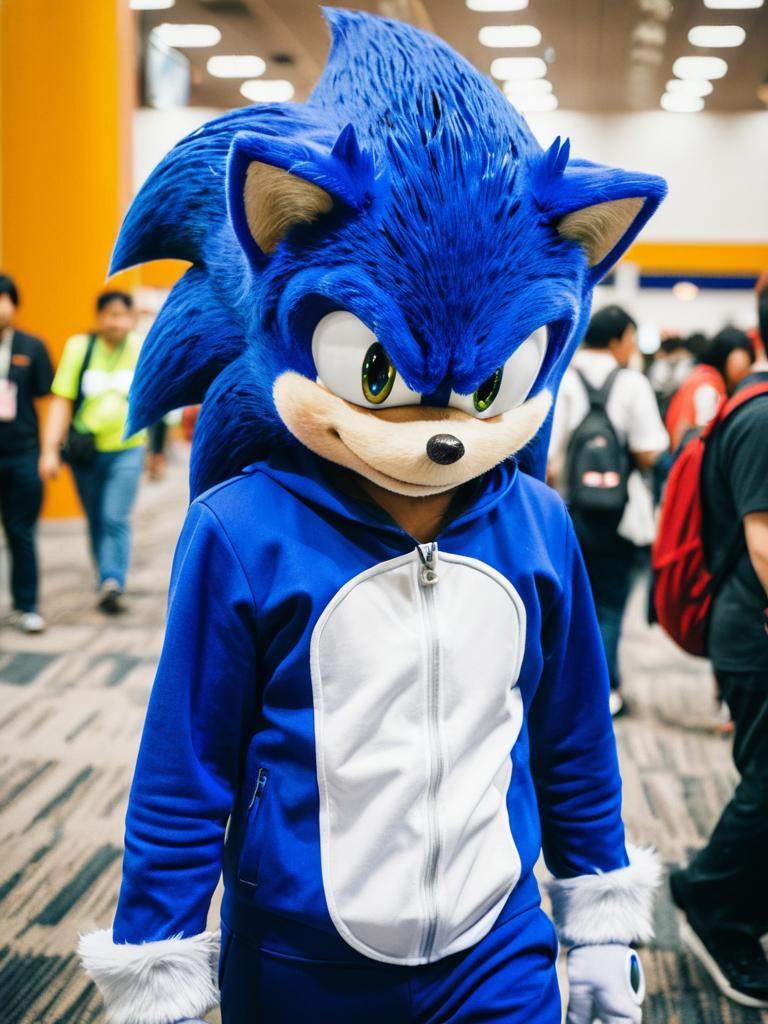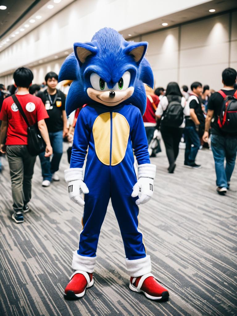 Man in Sonic the Hedgehog Costume, candid cosplay portrait at anime convention