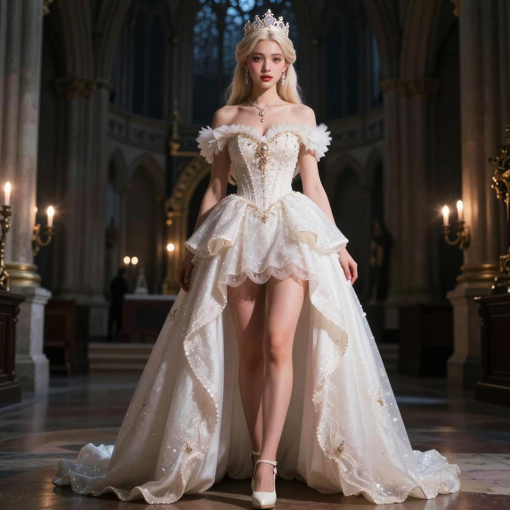 Masterpiece, extremely detailed CG unity 8k wallpaper, realistic, ((sfw))//1girl, white hair, wavy hair, long hair, //(see-through wedding dress:1), no panties, (wedding, bride:1.2), in church, standing////(ambient light:0.8), (cinematic composition:0.1), beautifully detailed background, depth of field