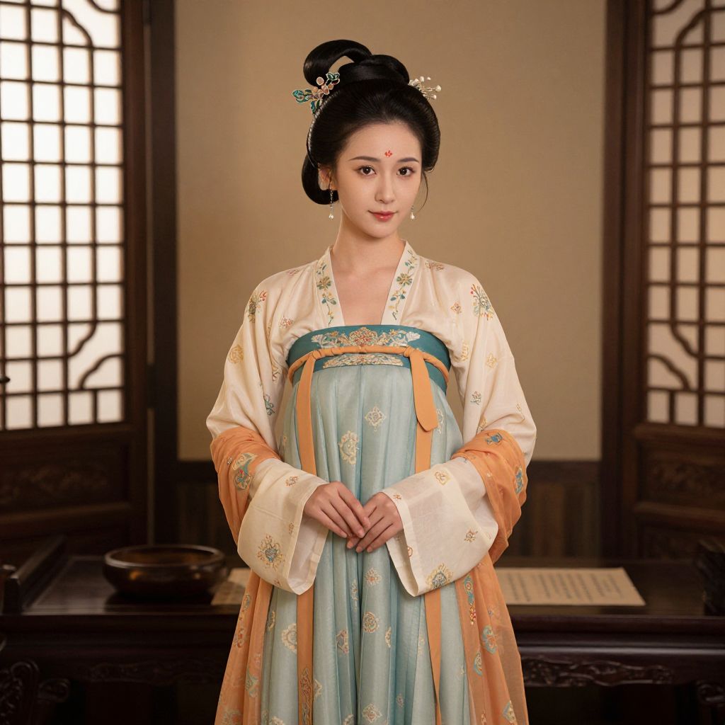 Beautiful Costume Woman, a woman in a traditional chinese dress standing in a room