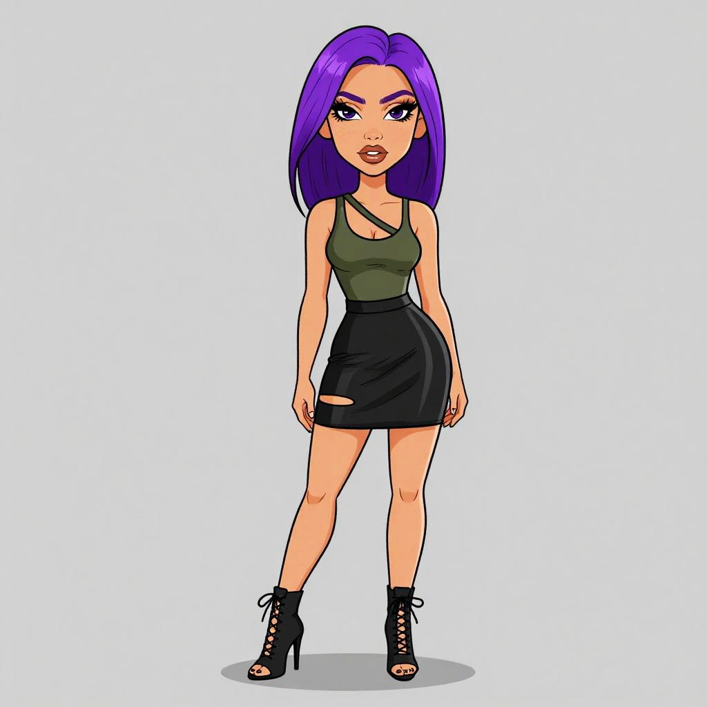 Woman with pretty face and pretty hair. Woman, contemporary chic, textured white crop top, square neckline, thin shoulder straps, high-waisted pale pink maxi skirt, side slit to the thigh, black clutch purse, minimalist black strappy heels, straight long hair, grey studio backdrop --sref 1467