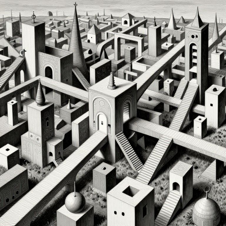 Surreal Gravity-Defying Escher Landscape