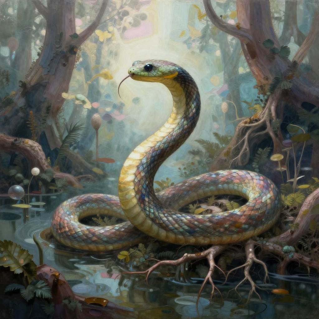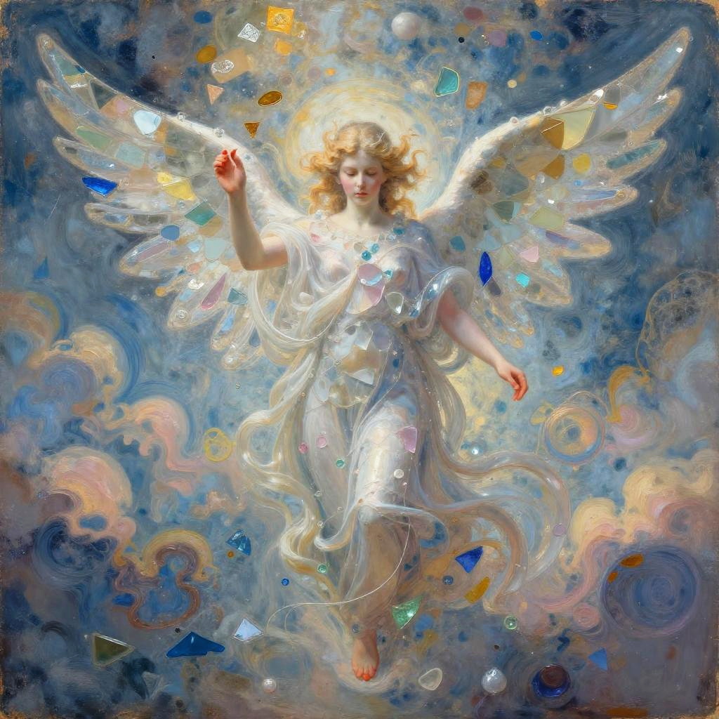 Spider made of woven silk threads, foggy woodland, realistic digital watercolor, ethereal, pastel colors, dramatic lighting, abstract, highly detailed, 8K.