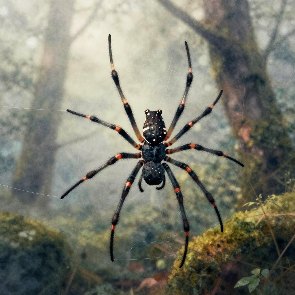 Ethereal Silk Spider in Foggy Woodland