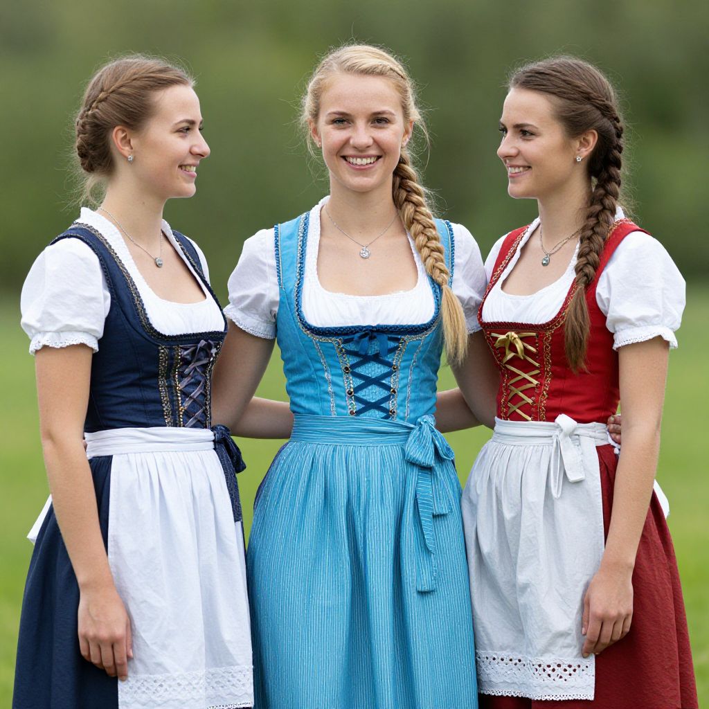 Bavarian ladies dress, woman in a blue dress with a braid in her hair