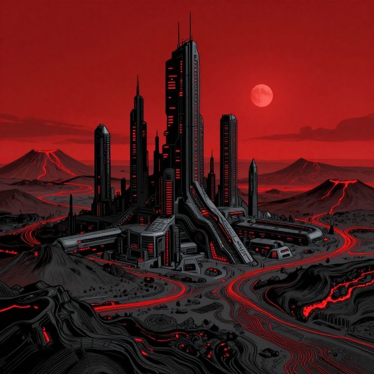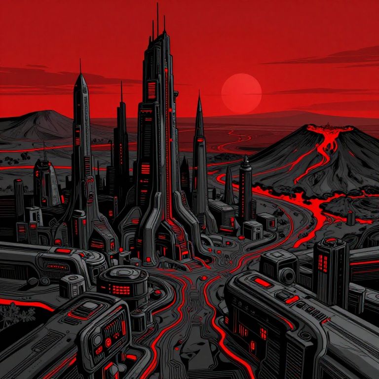 Sci-Fi Cityscape in Black and Red