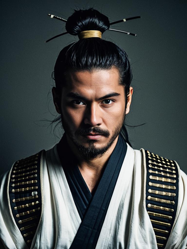 Photorealistic Samurai Man Bun Portrait
