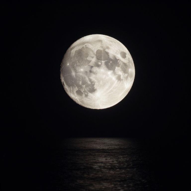 The moon hangs heavy in the night, its luminous surface mirroring not just the waters below but the infinite echoes of alternate worlds, casting a serene yet haunting glow that whispers of untold stories and the quiet mystery of existence.