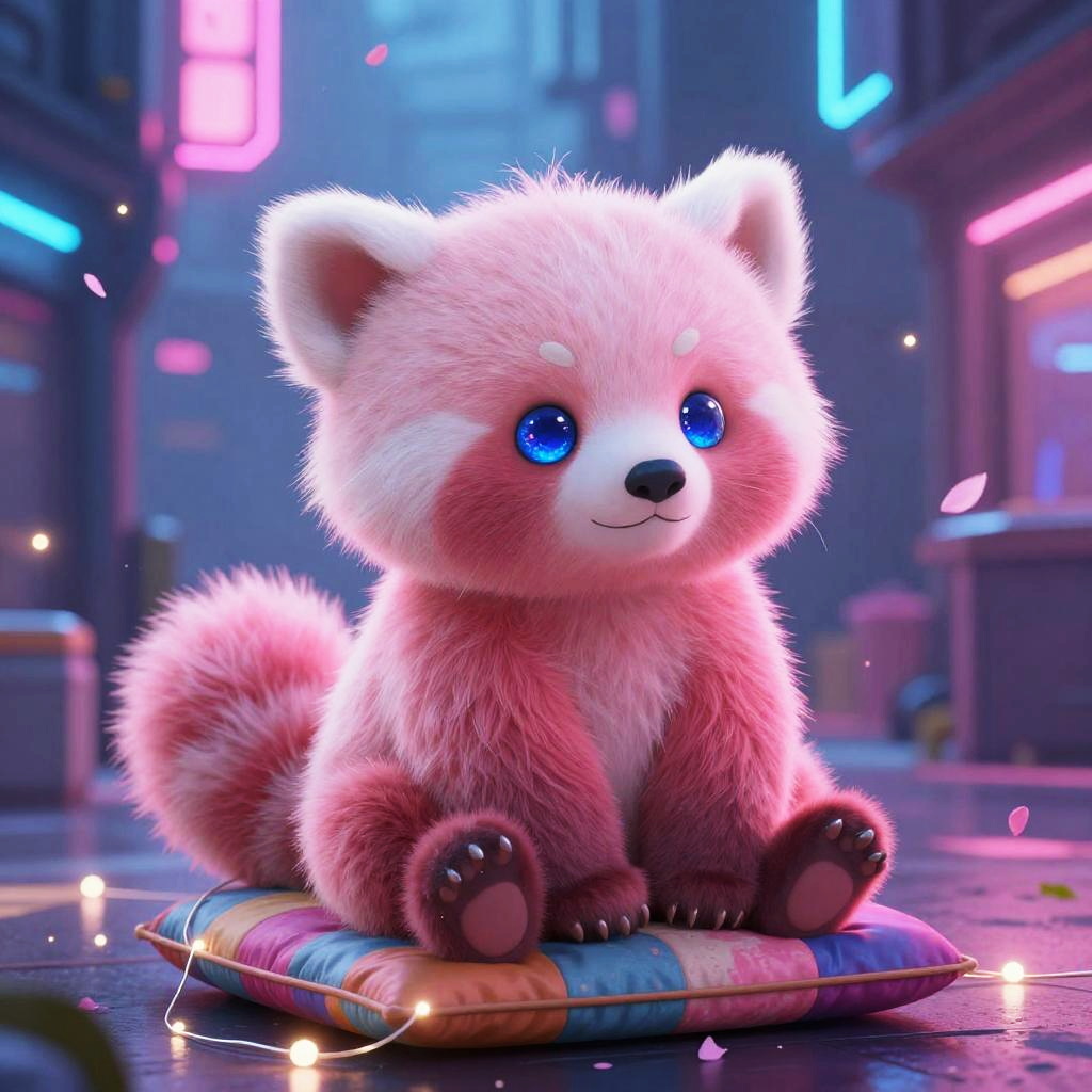 Quirky teal raccoon with wide curious eyes and a fuzzy ringed tail seated on a colorful cushion, surrounded by floating fairy lights and drifting flower petals in miniature craft studio scattered with paper cutouts and embroidery hoops. Rendered in stained-glass window art. Playful and dreamy atmosphere, soft rim light, shallow depth of field, delicate linework, clean edges, subtle vignette, high-resolution SDXL render, gentle bokeh, crisp highlights, atmospheric depth.