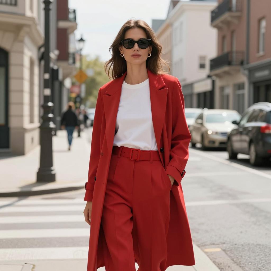 Woman with long brown hair wearing black strapless dress, large round sunglasses, oversized knitted sweater draped over arms, white straw bag, and sandals. Standing on cobblestone sidewalk, black SUV in background, white building with windows on left. Sunlight casts shadows on ground.