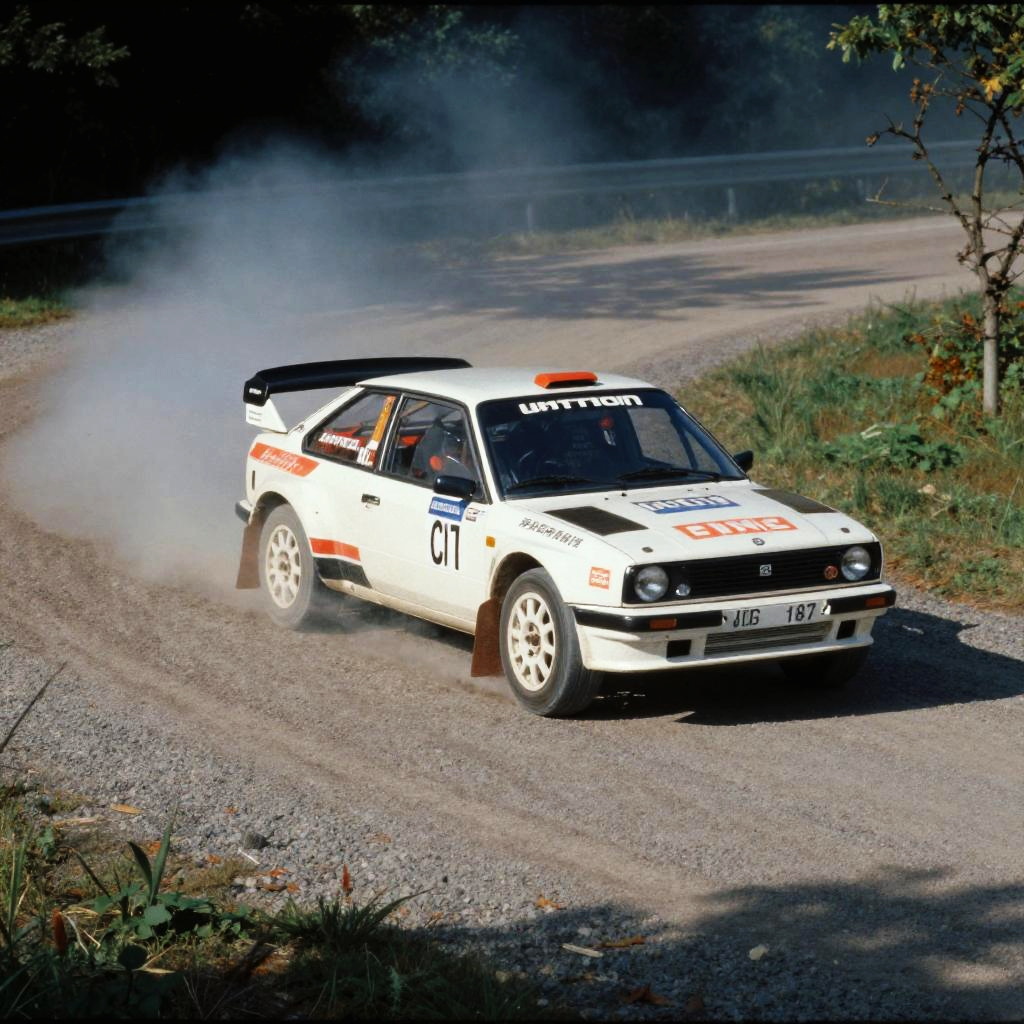 Rally car drifting around a tight corner, gravel spraying out., (cinematic color grading lighting vintage realistic film grain scratches celluloid analog cool shadows warm highlights soft focus actor directed cinematography technicolor :1.3)